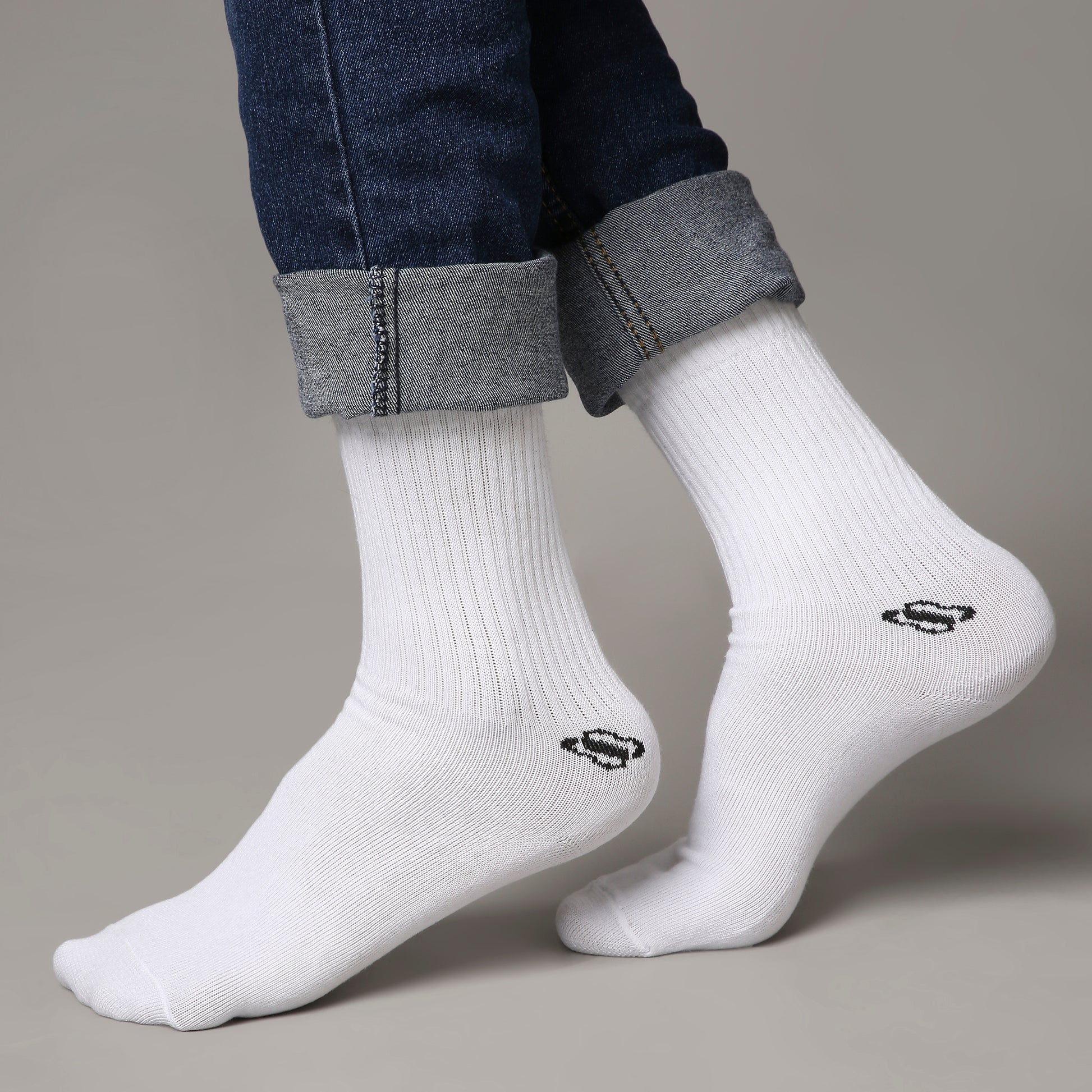 Meet the ultimate everyday essential—the Socksquads Comet Comfort Crew Socks. Crafted for all-day softness and durability, these classic white crew socks feature medium cushioning, a handlinked seamless toe, and a stay-up ribbed cuff for a perfect fit. Designed for unisex comfort, they combine breathable combed cotton with anti-odor technology, making them ideal for daily wear, office use, casual outings, or even light workouts.